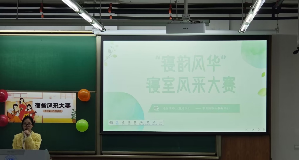 学生园区与事务中心举办的我院寝室风采大赛决赛于X4157准时开始。出席本次赛事的评委包括:2023级辅导员徐礼扬老师,园区指导老师姜茜,学生会主席王天博,学生会主席杨宇翰,学生会主席廖望,学生会主席郑思益。