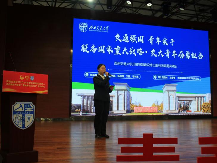 在大会上,学院的川藏铁路建设博士服务团作为优秀实践项目做分享交流。川藏铁路建设博士服务团第四次实践团团长、影巢