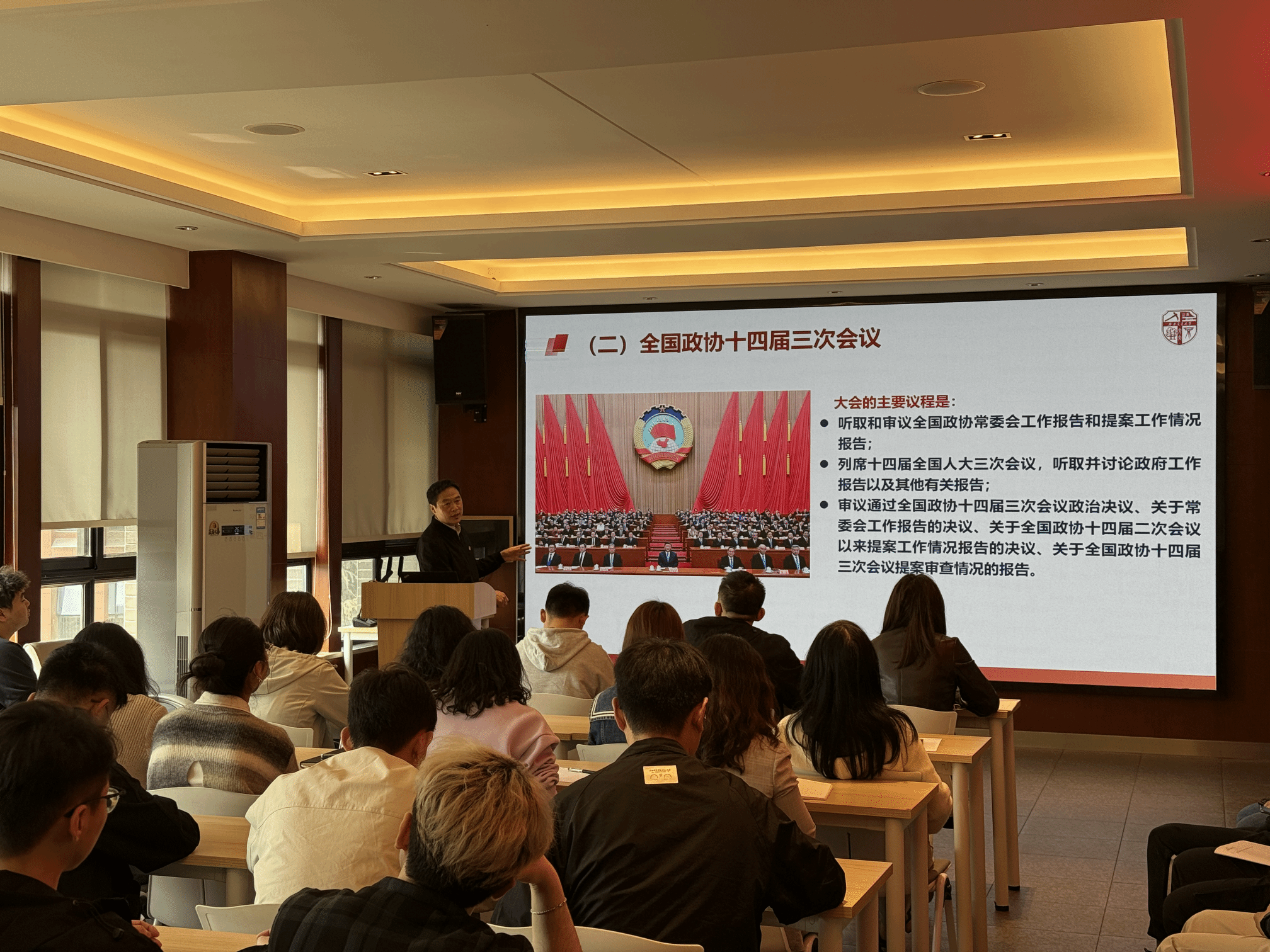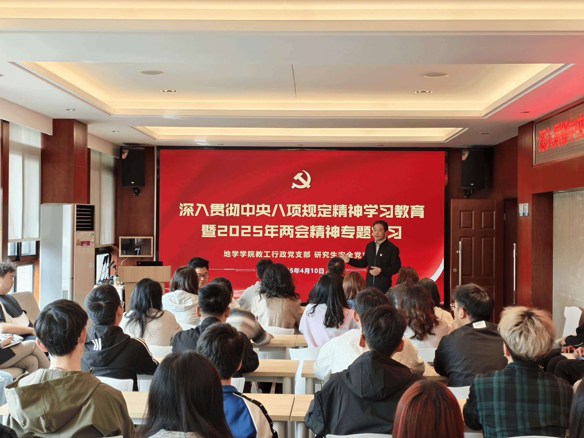 党委在X4520会议室召开深入贯彻中央八项规定精神学习教育工作暨2025年两会精神专题党课,此次党课由教工行政党支部书记杜鸿主持,影巢