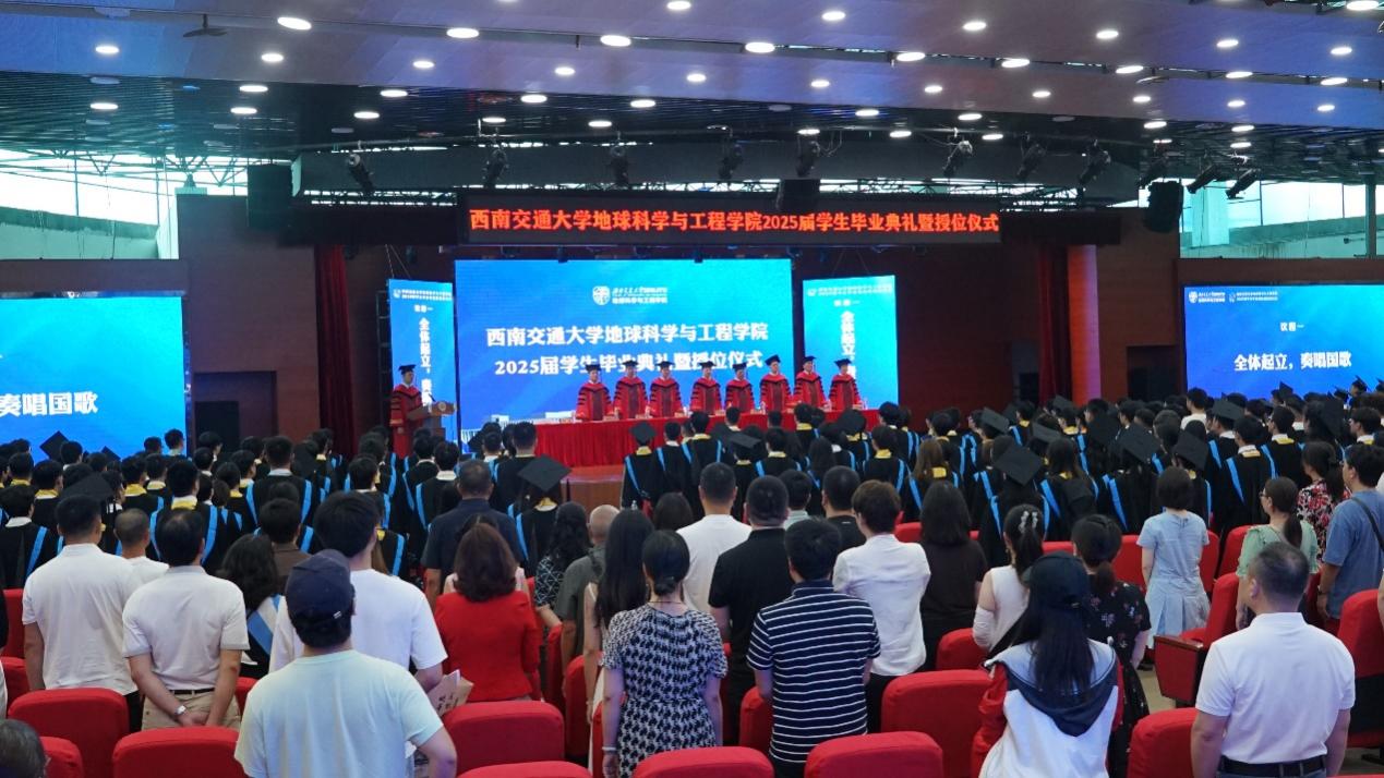 2025届学生毕业典礼暨授位仪式圆满结束后,同学们与毕业班辅导员老师一同上台,在“地学英才,引航未来”“竢实扬华,自强不息”的口号声中留下了青春大合影。祝愿2025届全体毕业生在人生的新赛道上,心系“国家事”,肩扛“地质责”,手执“测绘笔”,胸怀“消防志”,以专业所学服务时代所需,以青春之我筑家国之梦,跑出属于交大地学人的加速度,在广阔天地中绽放属于自己的光彩!