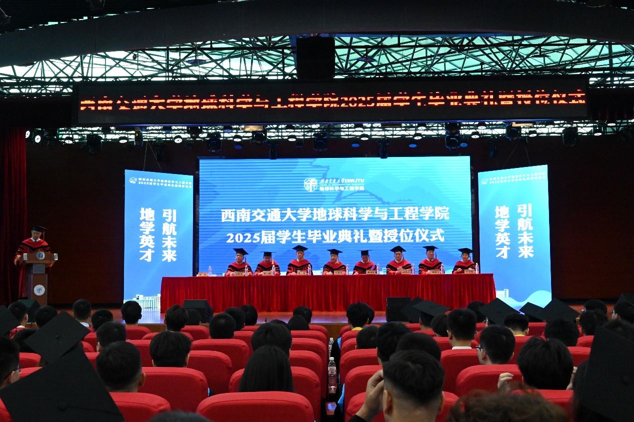 党委书记关秦川,院长刘国祥教授,副院长朱军教授,副院长、地质工程系主任赵晓彦教授,测绘遥感信息系主任曹云刚教授,教师代表胡卸文教授、袁林果教授、王玉峰教授,各学科专业老师、班导师、机关各科室负责人、辅导员、2025届全体本硕博毕业生及学生家长参加典礼。本次典礼由学院党委副书记郑波主持。