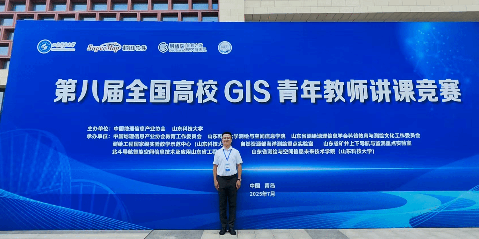 7月19-20日,由中国地理信息产业协会和山东科技大学等主办,中国地理信息产业协会教育工作委员会、山东科技大学测绘与空间信息学院等单位承办的第八届全国高校GIS青年教师讲课竞赛在山东科技大学成功举办。该竞赛每两年举办一次,旨在调动青年教师从事GIS教育教学的积极性,推动教学理念创新,提升青年教师的教学能力与业务素养,进一步提高课堂教学效果和人才培养质量。本次竞赛吸引了全国88所高校的青年教师参赛,经过两天的激烈角逐,我院青年教师谢亚坤荣获全国一等奖。