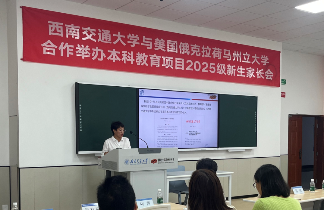 与美国俄克拉荷马州立大学合作举办本科教育项目(以下简称“项目”)2025级新生家长会在4249教室举行,旨在帮助家长了解项目基本情况,搭建家校沟通桥梁,共同促进学生成长。影巢