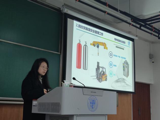实验室安全管理工作”为主题展开讲解。她首先从国家层面对高校实验室安全管理的要求出发,阐述了安全管理的政策依据与重大意义,随后详细介绍了我校在实验室安全管理方面的具体工作,涵盖危险化学品、气瓶、压力容器等重点环节的管理制度与操作规范。吴老师结合近年高校实验室安全事故案例,剖析了身边常见的安全隐患,并强调规范操作与日常检查的重要性。最后,她介绍了我校开展的各类实验室安全教育宣传活动,鼓励师生积极参与,共同筑牢校园安全防线。