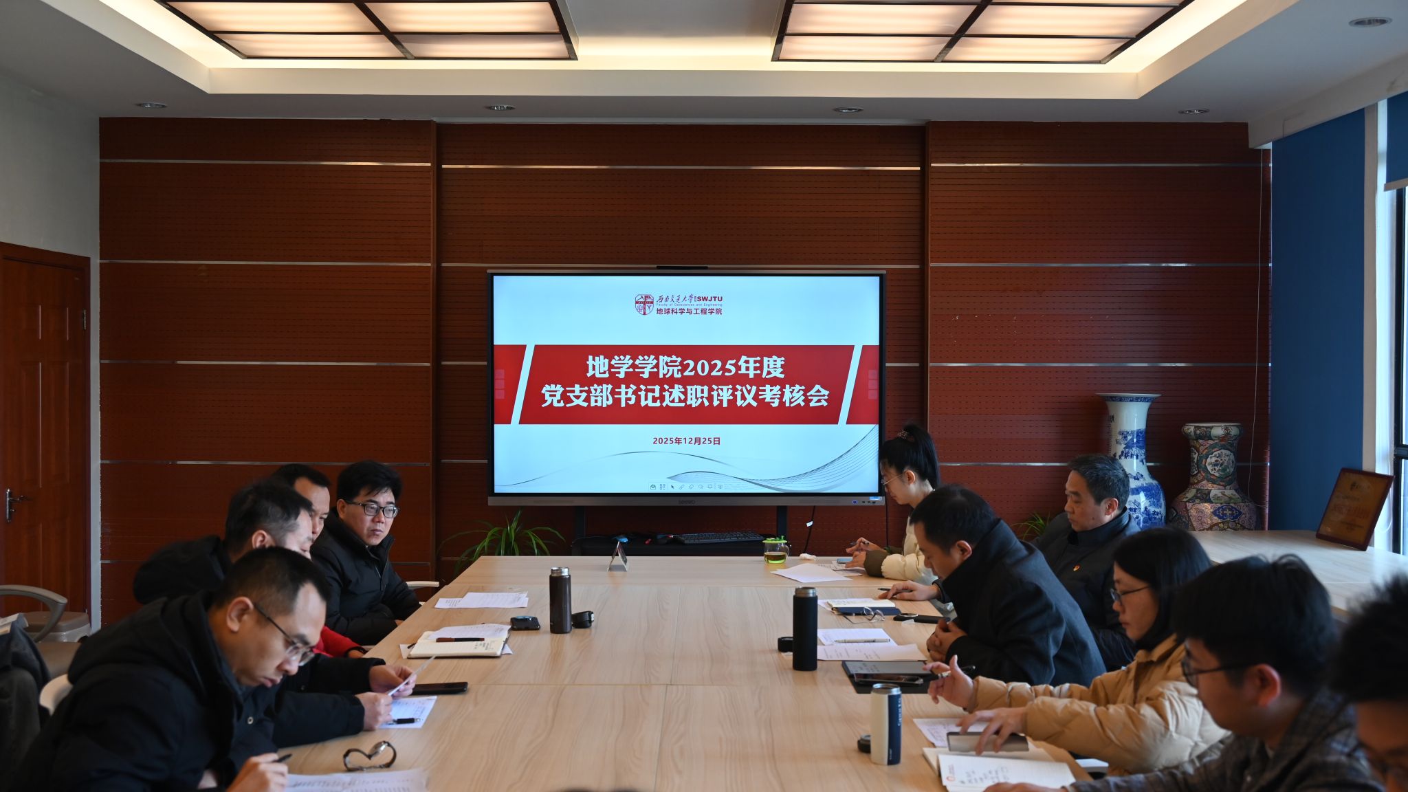 会议伊始,各教工党支部书记就2025年党支部工作情况进行了汇报。汇报紧紧围绕党纪学习教育和党的二十届四中全会精神的学习展开,并重点就提升党员思想政治素质、增强师生凝聚力、党建融合专业学科以及助力学院事业发展的实际成效进行支部成果展示。