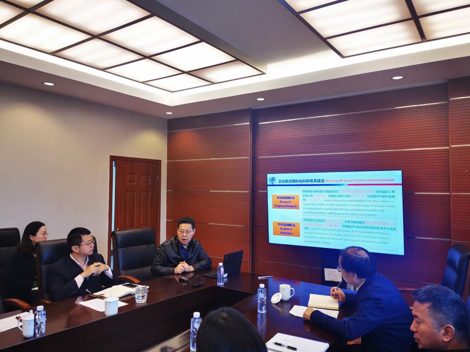 刘国祥代表学院对姚发明一行的到来表示欢迎。刘国祥围绕学院一体化进程、科研状况、引资引才、国际化示范学院申办情况等方面做详细工作报告。并对当前工作中存在的问题进行了总结,并提出了一些设想与计划。