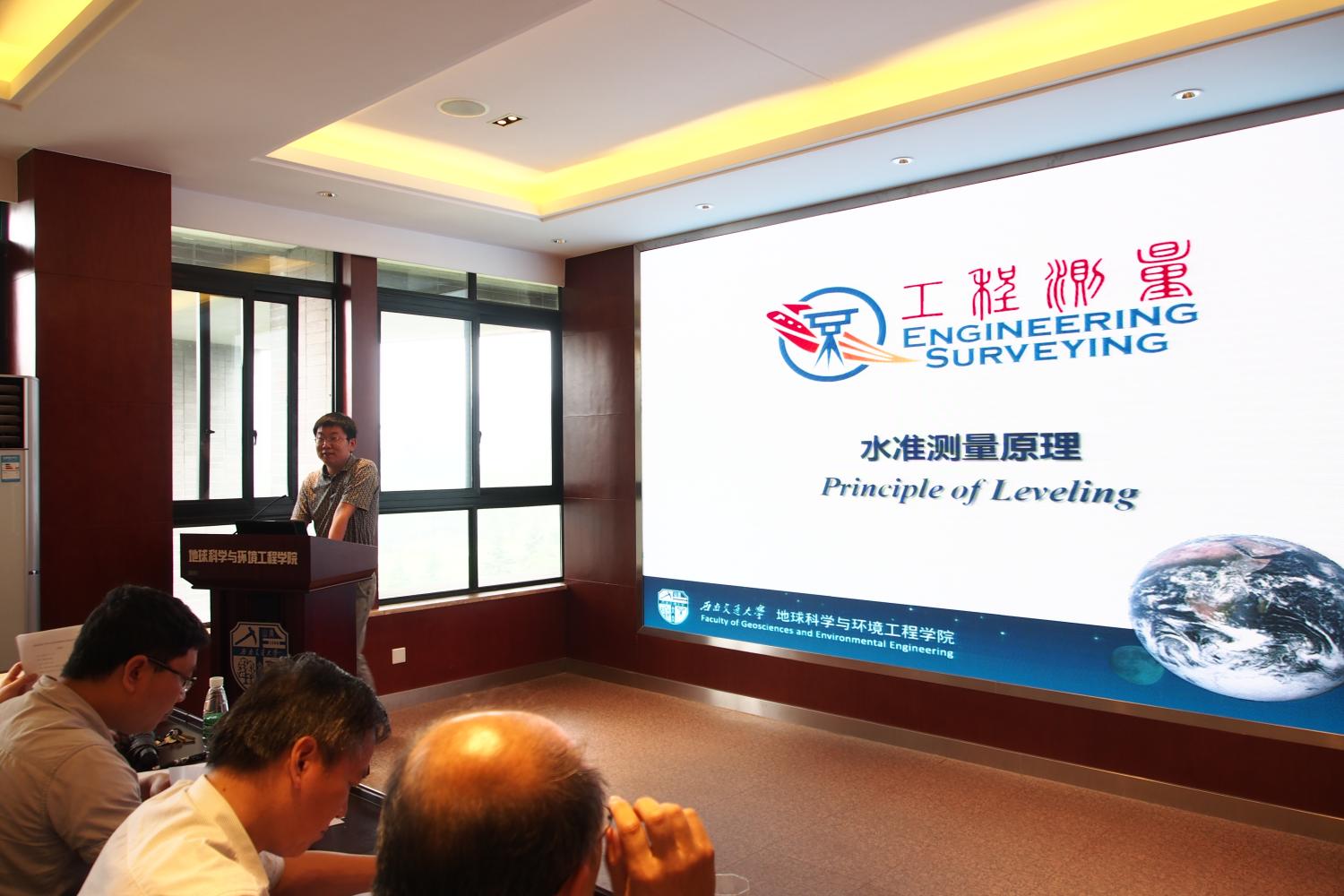 下午参赛的有四位老师。孙美玲老师给大家讲述了竖直角观测的内容,徐韶光老师介绍了关于测设的基本工作,袁林果老师带领大家学习了地面点点位表示方法的内容,还有钟萍老师给大家呈现了工程测量这门学科的概况。