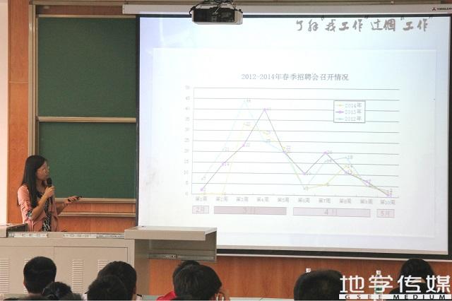 2016届毕业生就业指导讲座在4359教室隆重举行。就业处指导老师陈曦轶老师和院团委书记周青老师为大家做了“2015就业形势政策解读”和“地学2016届毕业设计职业素养提升之求职途径”两项主题的讲座,旨在介绍先就业政策,帮助影巢