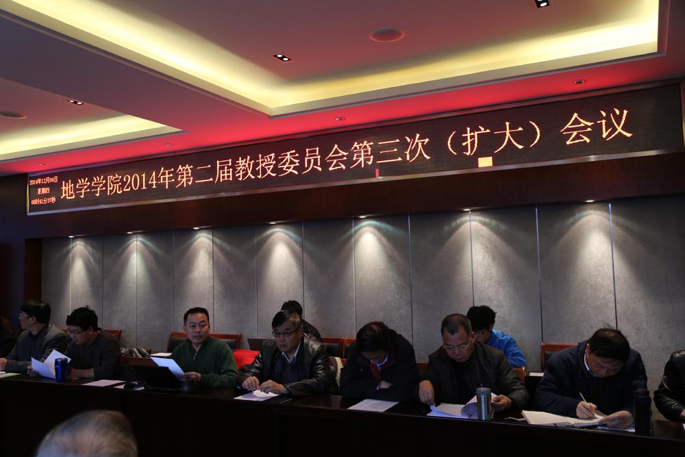 地球科学与环境工程学院第二届教授委员会第三次(扩大)会议于2014年12月4日在犀浦校区召开。学院第二届教授委员会全体成员出席,校领导张兵总会计师、海外院长周启鸣教授应邀参加了会议。学院全体教授及博士生导师、学院党政领导及部分退休老教授代表应邀列席了会议。会议由学院第二届教授委员会主任、学院执行院长朱庆教授主持。