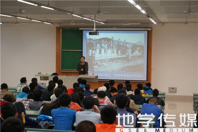 10月17号晚19:00,在X4359教室,资深校史研究专家梁锦唐教授对全体地学新生进行校史教育。