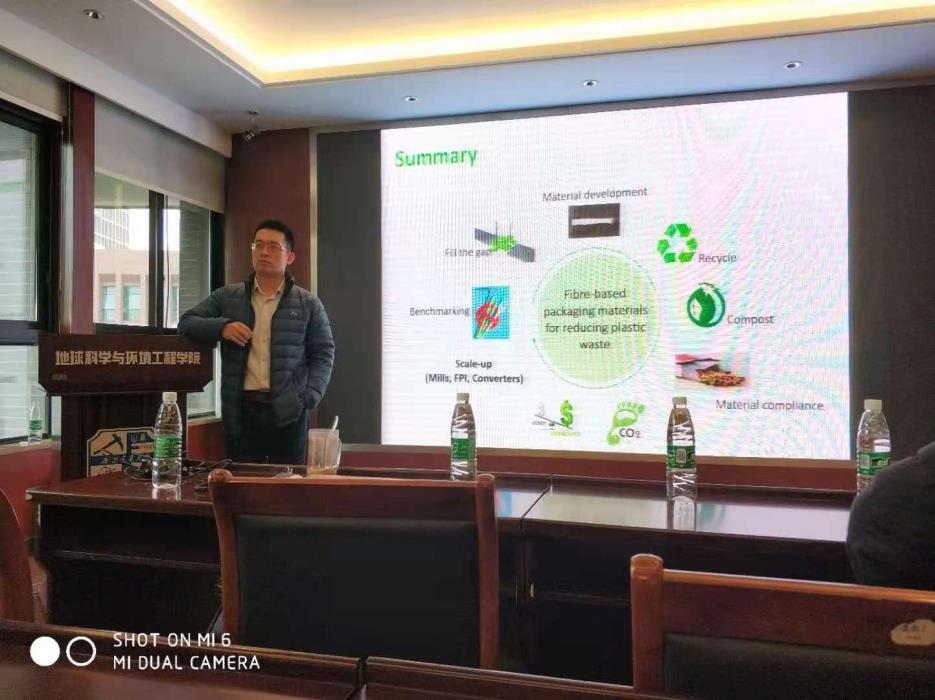 2020年1月10日早上10:00,应我院环境工程系教授范美坤邀请,来自加拿大林产品创新研究院(FPInnovations)的李庭杰博士在我院进行学术讲座。李庭杰博士在X4520为我院师生进行了主题为《减少塑料污染:纤维基生物材料的研发与应用》的精彩学术报告。