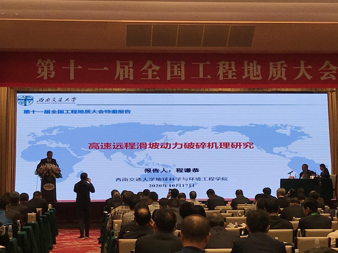申报承办2022年全国工程地质专业委员会高层论坛的汇报,专委会已同意由我校承办。程谦恭教授进行了题为“高速远程滑坡动力破碎机理研究”的大会特邀报告。