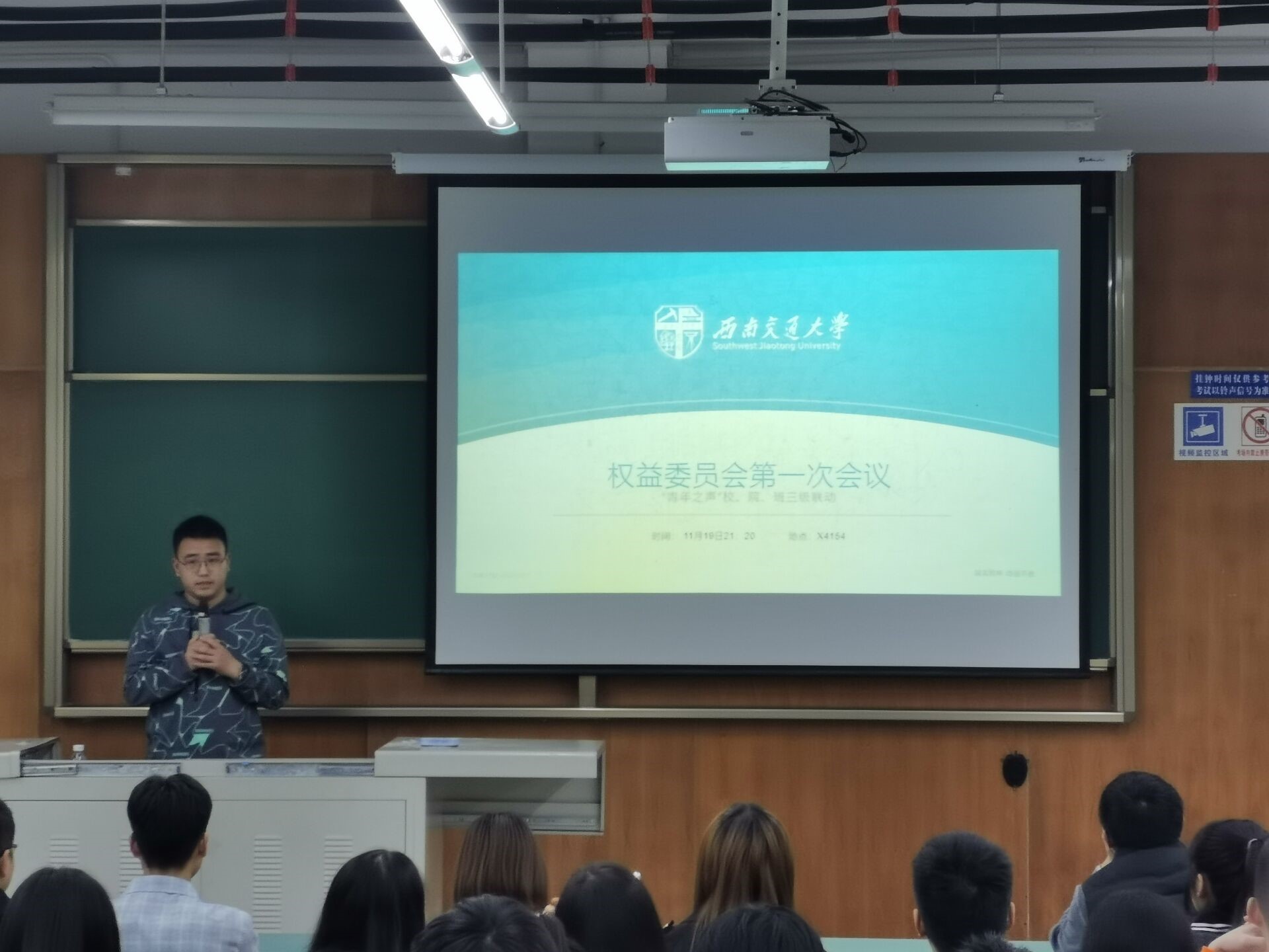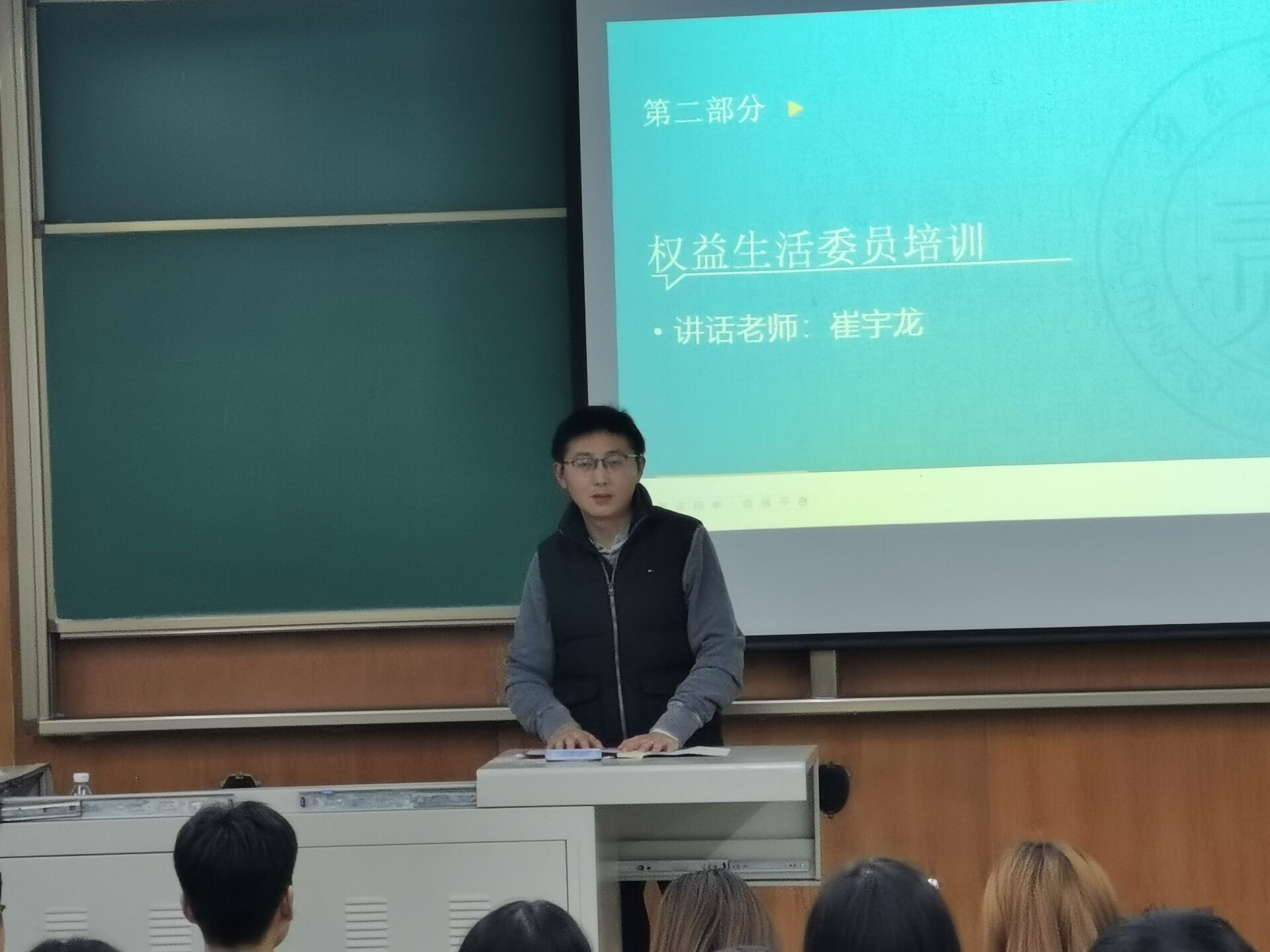 然后由学生园区负责老师崔宇龙老师进行权益生活委员培训