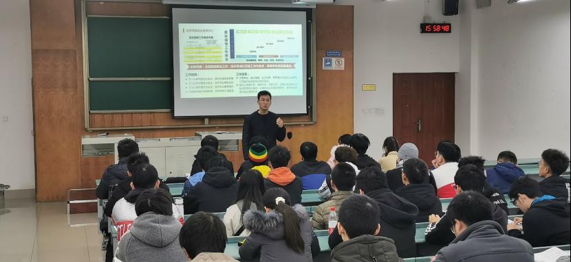 接着,杨都强就大学生涯分析了同学们在大学的每个阶段如何才能取得更好的进步:大一应以学习为重,打好学业基础;大二应注重参加科创竞赛,夯实专业知识;大三要做好职业素养的提升;大四要确定职业方向,做好职前价值塑造。
