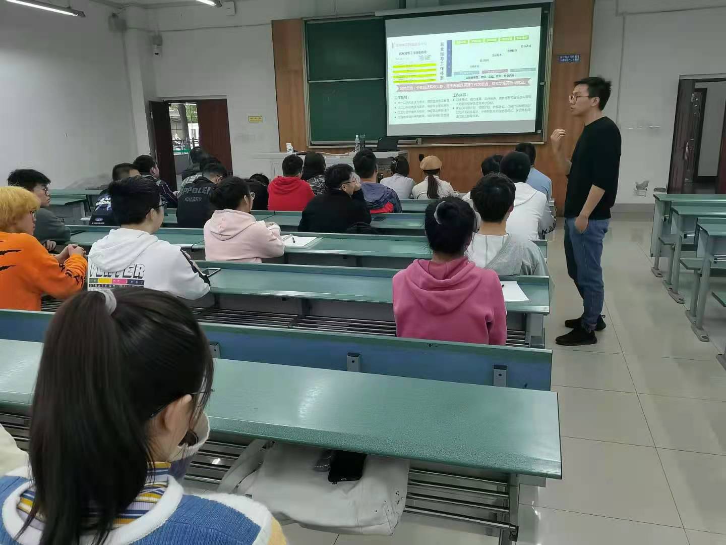 首先,由主讲教师杨都强老师简要地为我们介绍了大学各个年级的工作格局: