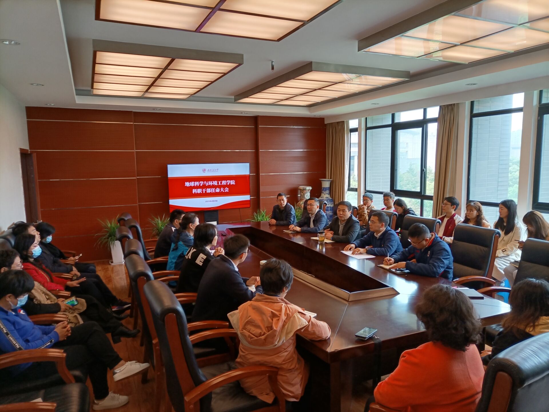 4月20日上午,地球科学与环境工程学院于X4531会议室召开了科职干部任命大会,参加会议的有学校党委组织部燕莆龙、学院党政领导班子以及教职工代表等。会议由影巢