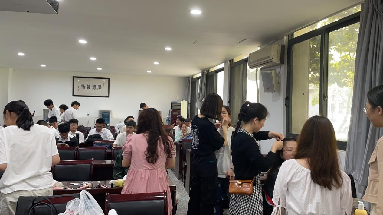 5月初,学院就积极动员、组织师生参赛,经过3周的辛苦练习,合唱队各个音部间的配合愈加默契,唱出的歌声也更具感染力。加练、彩排、化妆、赛前练声,只为以饱满的精神状态迎接比赛。