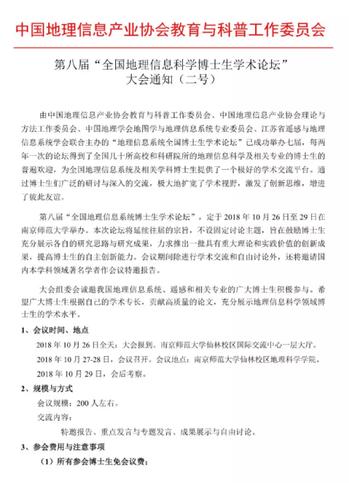 2018年全国GIS博士生论坛2号通知