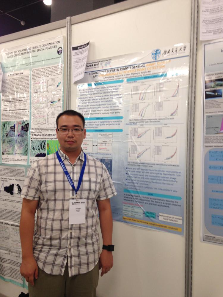 The International Geoscience and Remote Sensing Symposium 2015 (IGARSS 2015) was held from July 26th through July 31th, 2015, at the Convention Center in Milan, Italy. This is one of the most influential conferences in geoscience and remote sensing community, and attracted over 2000 academics and industry professionals from over 60 countries. Dr. Min Chen, Dr.Yuanxin Ye, Dr. Li Shen, and Jicheng Wang (graduate student) in our faculty attended the conference. Dr. Chen and Dr. Ye gave oral presentations titled “GGSOR: A GAUSSIAN-GAMMA-SHAPED BI-WINDOWS BASED DESCRIPTOR FOR OPTICAL AND SAR IMAGES MATCHING” and “AUTOMATC MATCHING OF OPTICAL AND SAR IMAGERY THROUGH SHAPE PROPERTY”, respectively. Dr. Shen and his graduate student Jicheng Wang gave a poster presentation titled “RESEARCH ON RELATIONSHIP BETWEEN REMOTE SENSING IMAGE QUALITY AND PERFORMANCE OF INTEREST POINT DETECTION”. IGARSS provides our faculty members and student an ideal forum for obtaining up-to-date information about the latest developments, exchanging ideas, identifying future trends and making networking with the international geoscience and remote sensing community.