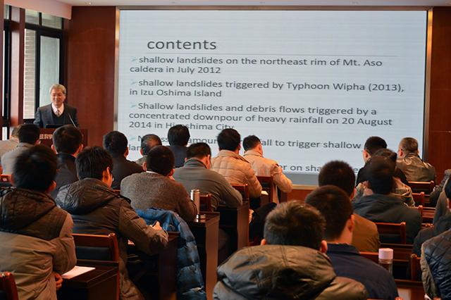 On 9th March 2015, Prof. WANG Fawu, the overseas dean, from Shimane University, paid a visit to the Faculty and gave a lecture entitled ‘The concentrated rainfall induceddebris flow disasterprevention’ to our staff members and postgraduate students.
