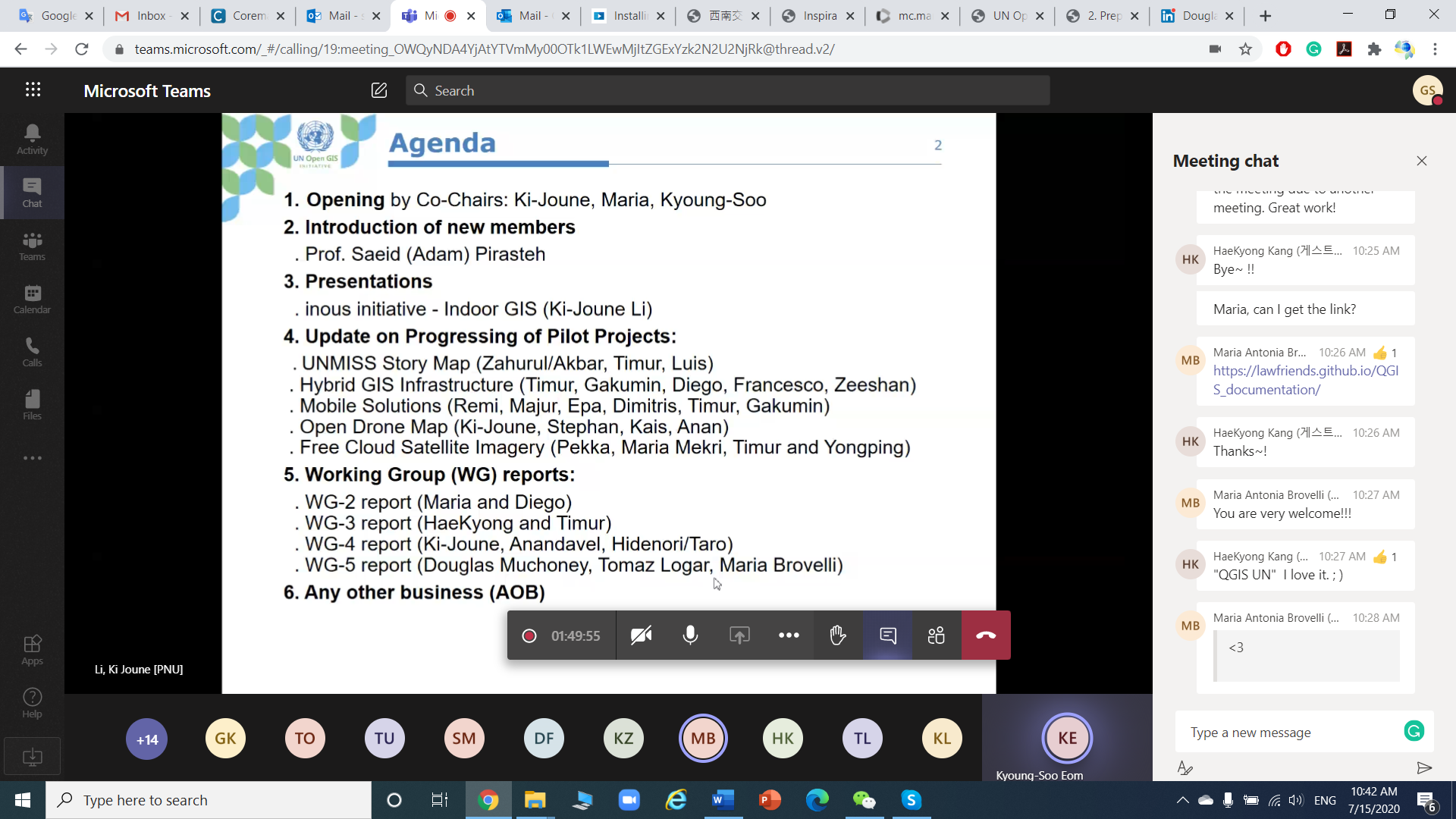 The meeting of the United Nations Open GIS was conducted virtually on (Wednesday, July 15, 2020).