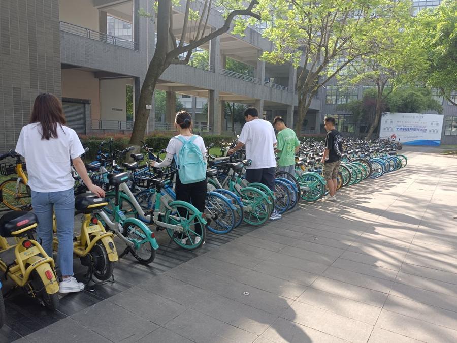 根据同学们反映,教学楼下常有乱停乱放自行车和电瓶车的现象,严重占用了上下课的出行通道,给师生带来了极大不便,为解决该问题许多小组开展了整理摆放校园单车志愿服务,各小组成员们齐心协力,单车乱停乱放的现象得到了很大改善。