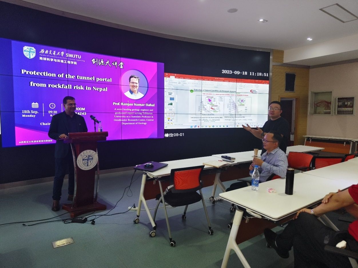 为推动国际化示范学院建设,开阔师生国际视野,提高师生科研能力,营造良好学术氛围,我院程谦恭教授团队特邀尼泊尔特里布文大学Ranjan Kumar Dahal教授于2023年9月18日上午在犀浦校区X4243会议室开展学术报告。Ranjan教授是尼泊尔地质工程和地质灾害领域著名专家,过去20年来一直从事地震、滑坡和泥石流等地质灾害的研究工作。