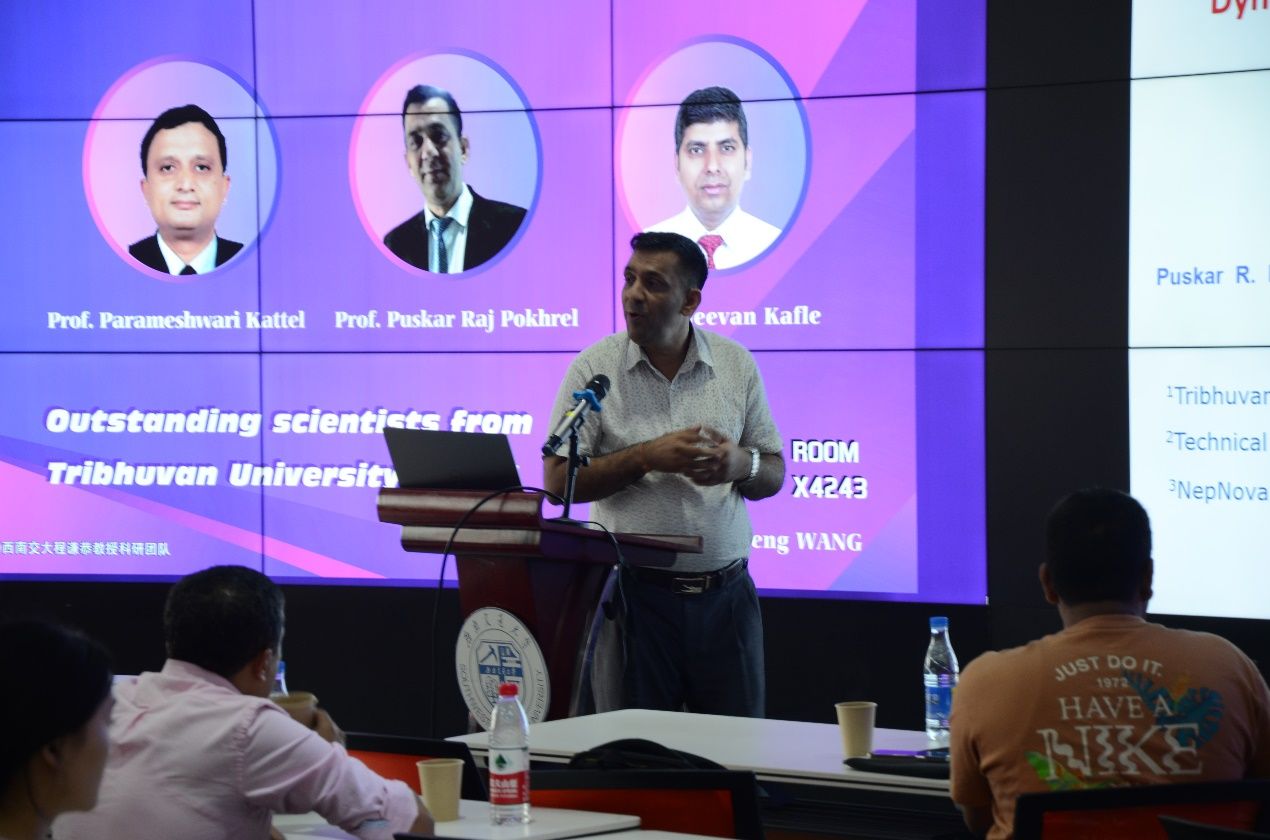 为推动国际化示范学院建设,开阔师生国际视野,提高师生科研能力,营造良好学术氛围,我院程谦恭教授团队特邀来自尼泊尔特里布文大学的Parameshwari Kattel、Puskar Raj Pokhrel和Jeevan Kafle三位副教授开展学术交流活动。三位学者长期从事颗粒流研究,擅长从力学和数学的角度出发,开展滑坡、泥石流等不同类型地质灾害运动演化过程研究。本次活动以线下与线上会议相结合的方式开展,累计70余人次参会。参会人员认真听取学习了3位学者的学术报告,并在会后积极与学者交流,受益匪浅。